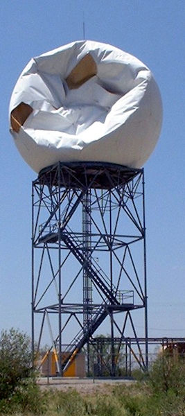Intact WSR-88D radome on left and destroyed radome at Del Rio, TX